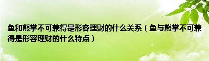 小伙伴们好,最近小闻发现有诸多的小伙伴们对于鱼与熊掌不可兼得是形容理财的什么特点这个都颇为感兴趣的,那么小跳今天就来为大家梳理下具体的一些信息一起来看看吧。