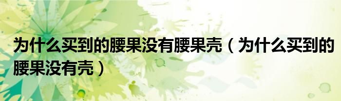 小伙伴们好,最近小闻发现有诸多的小伙伴们对于为什么买到的腰果没有壳这个都颇为感兴趣的,那么小跳今天就来为大家梳理下具体的一些信息一起来看看吧。