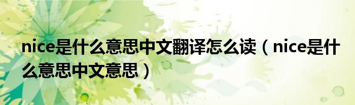 1、Nice,英文单词,形容词,名词,当用作形容词时,表示“精确的”;漂亮;微妙;种类”,当用作名词时,意思是“一个人的名字;(英语)好听”。