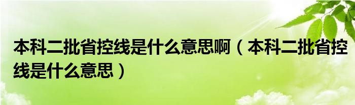 小伙伴们好,最近小闻发现有诸多的小伙伴们对于本科二批省控线是什么意思这个都颇为感兴趣的,那么小跳今天就来为大家梳理下具体的一些信息一起来看看吧。
