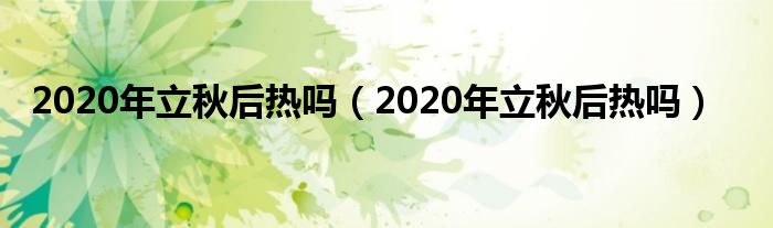小伙伴们好,最近小闻发现有诸多的小伙伴们对于2020年立秋后热吗这个都颇为感兴趣的,那么小跳今天就来为大家梳理下具体的一些信息一起来看看吧。