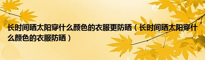 小伙伴们好,最近小闻发现有诸多的小伙伴们对于长时间晒太阳穿什么颜色的衣服防晒这个都颇为感兴趣的,那么小跳今天就来为大家梳理下具体的一些信息一起来看看吧。