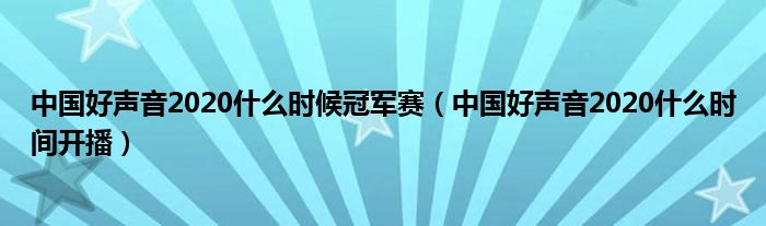 小伙伴们好,最近小闻发现有诸多的小伙伴们对于中国好声音2020什么时间开播这个都颇为感兴趣的,那么小跳今天就来为大家梳理下具体的一些信息一起来看看吧。