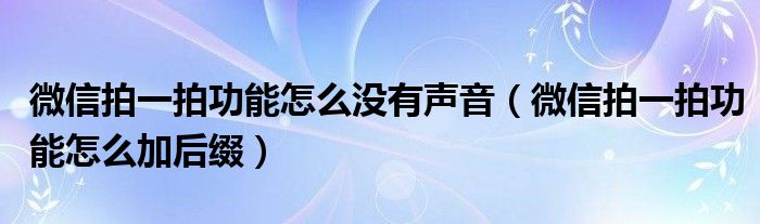 小伙伴们好,最近小闻发现有诸多的小伙伴们对于微信拍一拍功能怎么加后缀这个都颇为感兴趣的,那么小跳今天就来为大家梳理下具体的一些信息一起来看看吧。