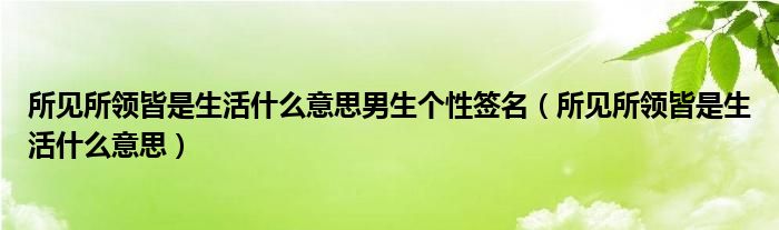 小伙伴们好,最近小闻发现有诸多的小伙伴们对于所见所领皆是生活什么意思这个都颇为感兴趣的,那么小跳今天就来为大家梳理下具体的一些信息一起来看看吧。