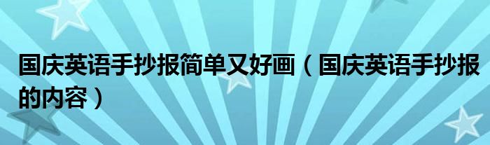 小伙伴们好,最近小闻发现有诸多的小伙伴们对于国庆英语手抄报的内容这个都颇为感兴趣的,那么小跳今天就来为大家梳理下具体的一些信息一起来看看吧。
