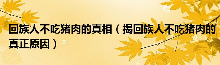 小伙伴们好,最近小闻发现有诸多的小伙伴们对于揭回族人不吃猪肉的真正原因这个都颇为感兴趣的,那么小跳今天就来为大家梳理下具体的一些信息一起来看看吧。