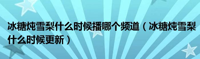 小伙伴们好,最近小闻发现有诸多的小伙伴们对于冰糖炖雪梨什么时候更新这个都颇为感兴趣的,那么小跳今天就来为大家梳理下具体的一些信息一起来看看吧。