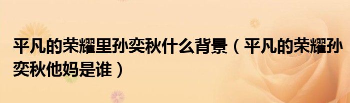 小伙伴们好,最近小闻发现有诸多的小伙伴们对于平凡的荣耀孙奕秋他妈是谁这个都颇为感兴趣的,那么小跳今天就来为大家梳理下具体的一些信息一起来看看吧。