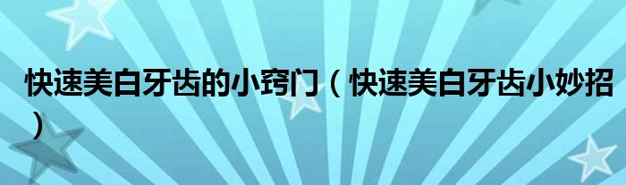 小伙伴们好,最近小闻发现有诸多的小伙伴们对于快速美白牙齿小妙招这个都颇为感兴趣的,那么小跳今天就来为大家梳理下具体的一些信息一起来看看吧。