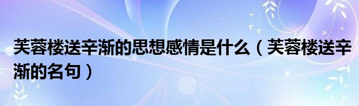 小伙伴们好,最近小闻发现有诸多的小伙伴们对于芙蓉楼送辛渐的名句这个都颇为感兴趣的,那么小跳今天就来为大家梳理下具体的一些信息一起来看看吧。