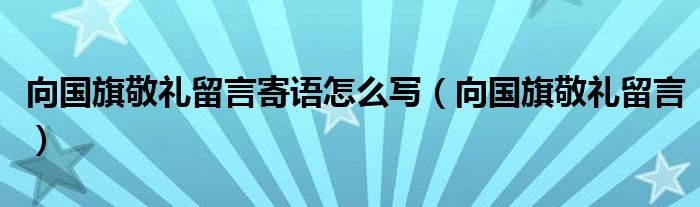 小伙伴们好,最近小闻发现有诸多的小伙伴们对于向国旗敬礼留言这个都颇为感兴趣的,那么小跳今天就来为大家梳理下具体的一些信息一起来看看吧。
