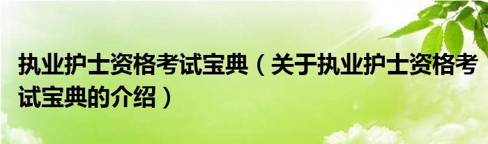 大家好,小新来为大家解答以上的问题。执业护士资格考试宝典,关于执业护士资格考试宝典的介绍很多人还不知道,现在让我们一起来看看吧!