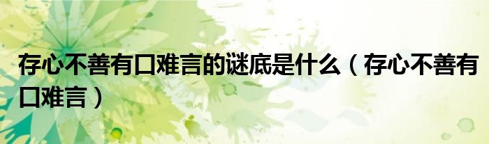 小伙伴们好,最近小闻发现有诸多的小伙伴们对于存心不善有口难言这个都颇为感兴趣的,那么小跳今天就来为大家梳理下具体的一些信息一起来看看吧。