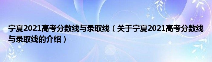 大家好,小新来为大家解答以上的问题。宁夏2021高考分数线与录取线,关于宁夏2021高考分数线与录取线的介绍很多人还不知道,现在让我们一起来看看吧!