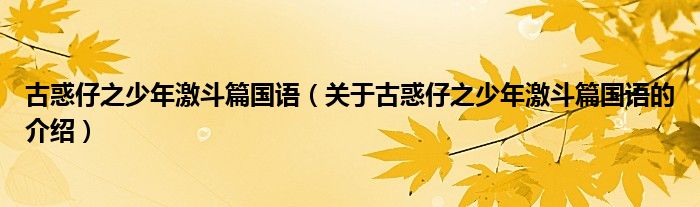 大家好,小新来为大家解答以上的问题。古惑仔之少年激斗篇国语,关于古惑仔之少年激斗篇国语的介绍很多人还不知道,现在让我们一起来看看吧!