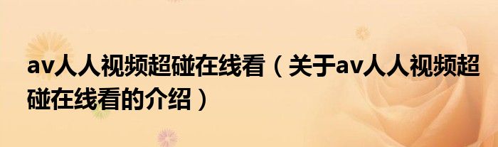 大家好,小新来为大家解答以上的问题。av人人视频超碰在线看,关于av人人视频超碰在线看的介绍很多人还不知道,现在让我们一起来看看吧!