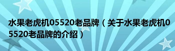 大家好,小新来为大家解答以上的问题。水果老虎机05520老品牌,关于水果老虎机05520老品牌的介绍很多人还不知道,现在让我们一起来看看吧!