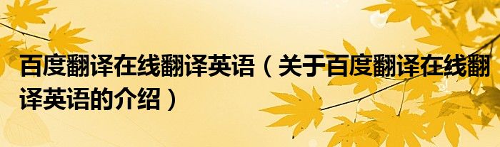 大家好,小新来为大家解答以上的问题。百度翻译在线翻译英语,关于百度翻译在线翻译英语的介绍很多人还不知道,现在让我们一起来看看吧!