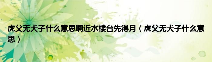 小伙伴们好,最近小闻发现有诸多的小伙伴们对于虎父无犬子什么意思这个都颇为感兴趣的,那么小跳今天就来为大家梳理下具体的一些信息一起来看看吧。