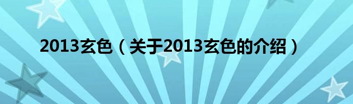 大家好,小新来为大家解答以上的问题。2013玄色,关于2013玄色的介绍很多人还不知道,现在让我们一起来看看吧!
