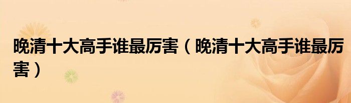 大家好,小生来为大家讲解下。晚清十大高手谁最厉害,晚清十大高手谁最厉害很多人还不知道,现在让我们一起来看看吧!