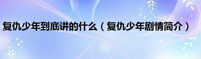 大家好,伊人来为大家解答以上问题。复仇少年到底讲的什么,复仇少年剧情简介很多人还不知道,现在让我们一起来看看吧!