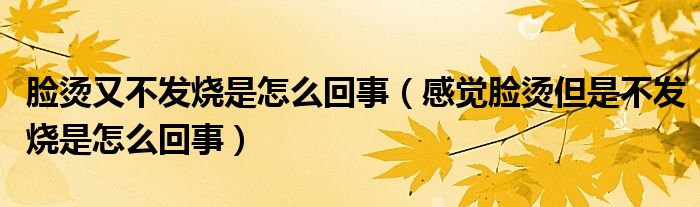 摘要大家好,知识小编来为大家解答以上的问题。脸烫又不发烧是怎么回事,感觉脸烫但是不发烧是怎么回事很多人还不知道,现在让我们一起来看看吧