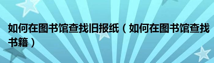 大家好,小生来为大家讲解下。如何在图书馆查找旧报纸,如何在图书馆查找书籍很多人还不知道,现在让我们一起来看看吧!