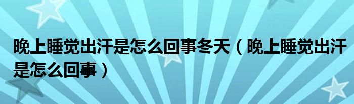 大家好,知识小编来为大家解答以上的问题。晚上睡觉出汗是怎么回事冬天,晚上睡觉出汗是怎么回事很多人还不知道,现在让我们一起来看看吧!
