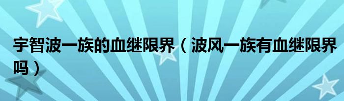 大家好,小生来为大家讲解下。宇智波一族的血继限界,波风一族有血继限界吗很多人还不知道,现在让我们一起来看看吧!
