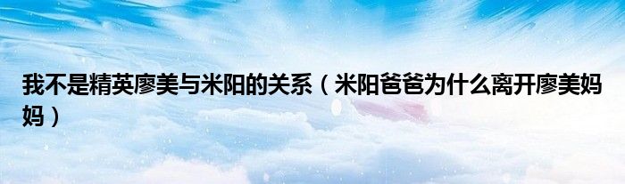 大家好,小生来为大家讲解下。我不是精英廖美与米阳的关系,米阳爸爸为什么离开廖美妈妈很多人还不知道,现在让我们一起来看看吧!