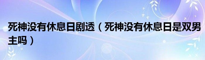 摘要大家好,小育来为大家讲解下。死神没有休息日剧透,死神没有休息日是双男主吗很多人还不知道,现在让我们一起来看看吧!1、死亡是没有休息