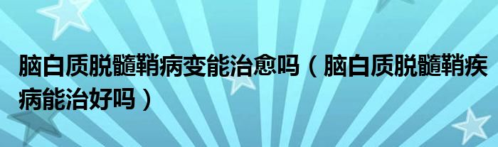 摘要大家好,知识小编来为大家解答以上的问题。脑白质脱髓鞘病变能治愈吗,脑白质脱髓鞘疾病能治好吗很多人还不知道,现在让我们一起来看看吧!