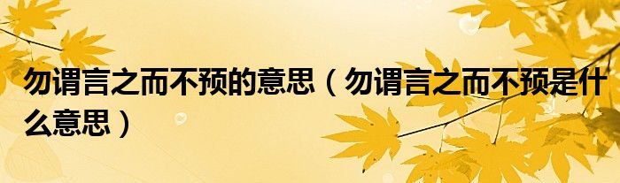 大家好,小育来为大家讲解下。勿谓言之而不预的意思,勿谓言之而不预是什么意思很多人还不知道,现在让我们一起来看看吧!