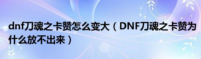 大家好,小育来为大家讲解下。dnf刀魂之卡赞怎么变大,DNF刀魂之卡赞为什么放不出来很多人还不知道,现在让我们一起来看看吧!