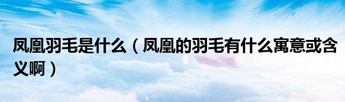 大家好,小育来为大家讲解下。凤凰羽毛是什么,凤凰的羽毛有什么寓意或含义啊很多人还不知道,现在让我们一起来看看吧!