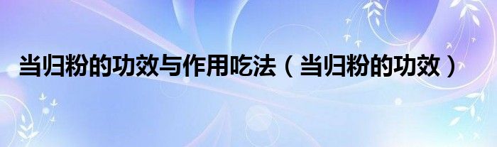 摘要 大家好,知识小编来为大家解答以上的问题。当归粉的功效与作用吃法,当归粉的功效很多人还不知道,现在让我们一起来看看吧!1 补血活血功效