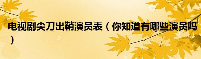 大家好,伊人来为大家解答以上问题。电视剧尖刀出鞘演员表,你知道有哪些演员吗很多人还不知道,现在让我们一起来看看吧!