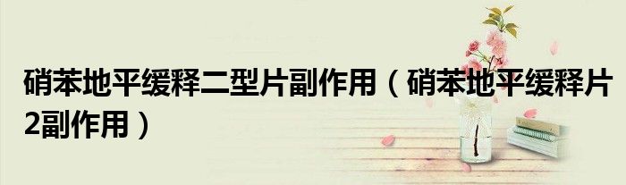 摘要大家好,知识小编来为大家解答以上的问题。硝苯地平缓释二型片副作用,硝苯地平缓释片2副作用很多人还不知道,现在让我们一起来看看吧!硝