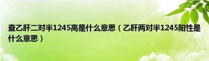 大家好,知识小编来为大家解答以上的问题。查乙肝二对半1245高是什么意思,乙肝两对半1245阳性是什么意思很多人还不知道,现在让我们一起来看看吧!