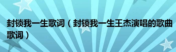 大家好,伊人来为大家解答以上问题。封锁我一生歌词,封锁我一生王杰演唱的歌曲歌词很多人还不知道,现在让我们一起来看看吧!