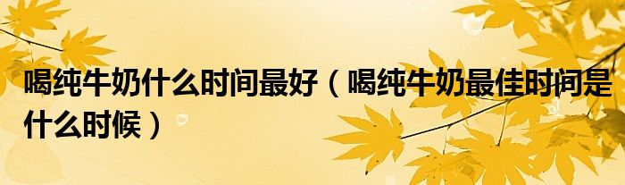 喝纯牛奶的最佳时间是早上。1.牛奶富含钙。如果早上喝,早上和下午户外活动后,阳光照射皮肤产生维生素D,可以明显促进早上吃的牛奶中钙的吸收率。所以早上喝纯牛奶可以更好的吸收和利用纯牛奶中的钙。2.从中医食疗的角度来说,纯奶性寒凉,早晨是阳气最旺盛的时候。如果在早晨阳气最旺盛的时候喝寒凉的纯牛奶,可以通过脾阳的运化,促进纯牛奶的代谢利用。本文到此结束,希望对大家有所帮助。