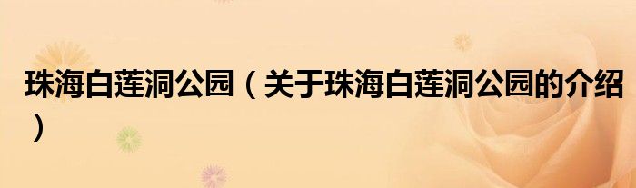 摘要大家好,小新来为大家解答以上的问题。珠海白莲洞公园,关于珠海白莲洞公园的介绍很多人还不知道,现在让我们一起来看看吧!1、白莲洞又称