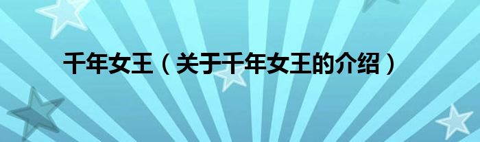大家好,小新来为大家解答以上的问题。千年女王,关于千年女王的介绍很多人还不知道,现在让我们一起来看看吧!