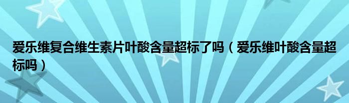 大家好,知识小编来为大家解答以上的问题。爱乐维复合维生素片叶酸含量超标了吗,爱乐维叶酸含量超标吗很多人还不知道,现在让我们一起来看看吧!