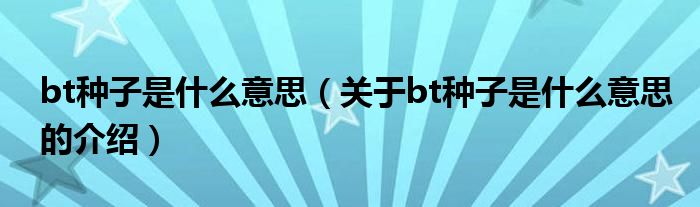 大家好,小新来为大家解答以上的问题。bt种子是什么意思,关于bt种子是什么意思的介绍很多人还不知道,现在让我们一起来看看吧!