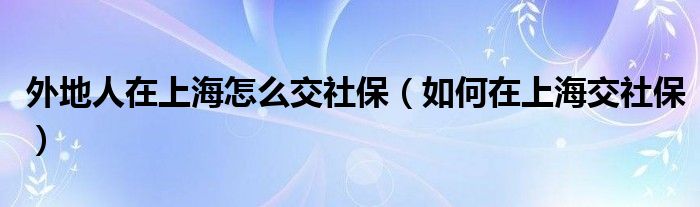 大家好,伊人来为大家解答以上问题。外地人在上海怎么交社保,如何在上海交社保很多人还不知道,现在让我们一起来看看吧!