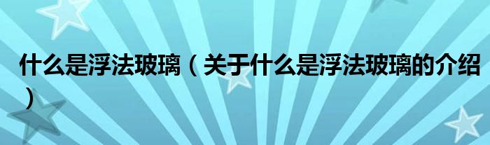 大家好,小新来为大家解答以上的问题。什么是浮法玻璃,关于什么是浮法玻璃的介绍很多人还不知道,现在让我们一起来看看吧!