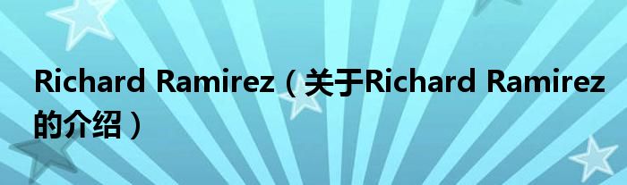 大家好,小新来为大家解答以上的问题。Richard Ramirez,关于Richard Ramirez的介绍很多人还不知道,现在让我们一起来看看吧!